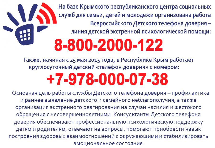 Детский телефон доверия — это бесплатная круглосуточная линия экстренной психологической помощи для детей, подростков, их родителей и всех, кто столкнулся с трудностями в воспитании и взаимоотношениях с детьми.